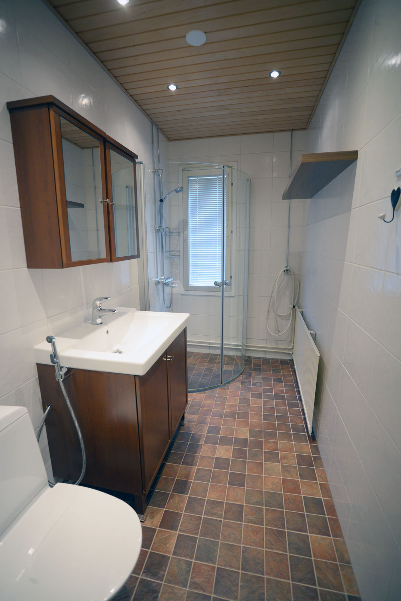 The closest shop is about 100 m away and so is the closest bus stop. The Korso train station and its services are about 1 km away. From the train station it takes about 28 minutes to the city center by train.